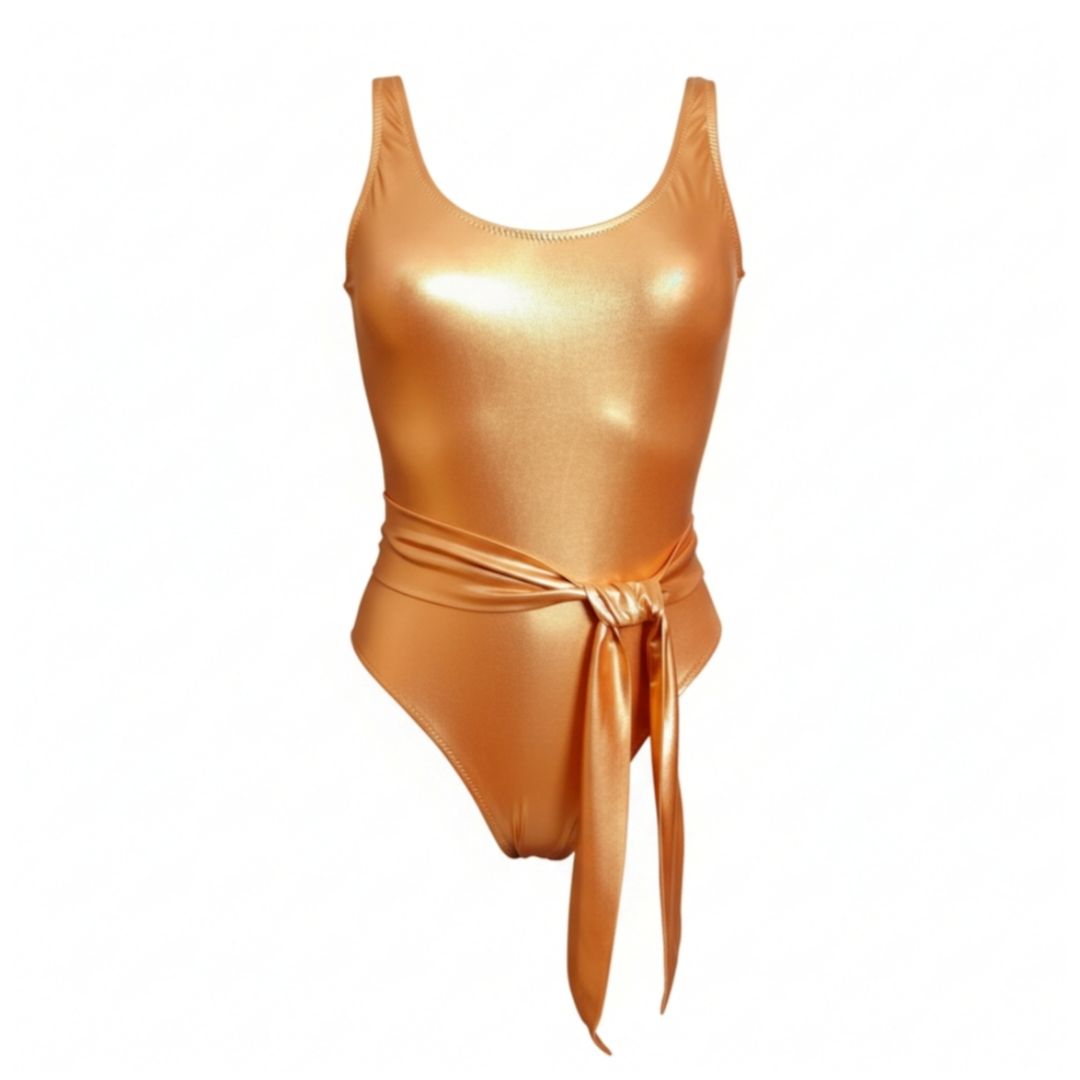 El bañador LUMIÈRE en Copper Orange está confeccionado en un tejido metálico de alta calidad que refleja la luz con un acabado luminoso y sofisticado. Su tono cobre anaranjado aporta calidez a la piel y crea un efecto elegante y poderoso. Las piezas de la colección Lumière prescinden de accesorios metálicos o plásticos.